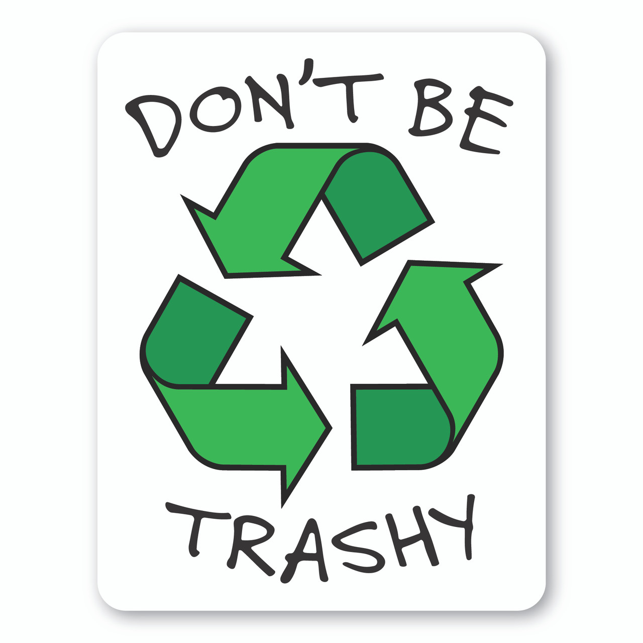 The product dimensions of this “Don’t Be Trashy” Decal Recycle Symbol is 3.875" x 5"