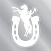 - Horseshoe & Cowboy White Static Cling: Transparent, weather-resistant Static Cling featuring a bold white cowboy and horseshoe design. Ideal for personalizing any surface!