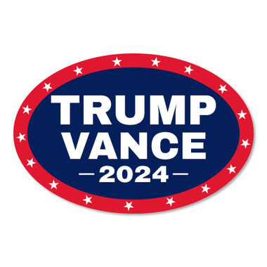 Show your support for the Trump/Vance 2024 campaign with this eye-catching Oval Magnet. Made from durable, weather-resistant materials, it features vibrant, high-quality graphics that proudly display the Trump and Vance names, making it a perfect addition to your car, fridge, or any metal surface. Ideal for rallying support or showing your political stance, this magnet is a bold and stylish way to back your favorite candidates in the upcoming election.